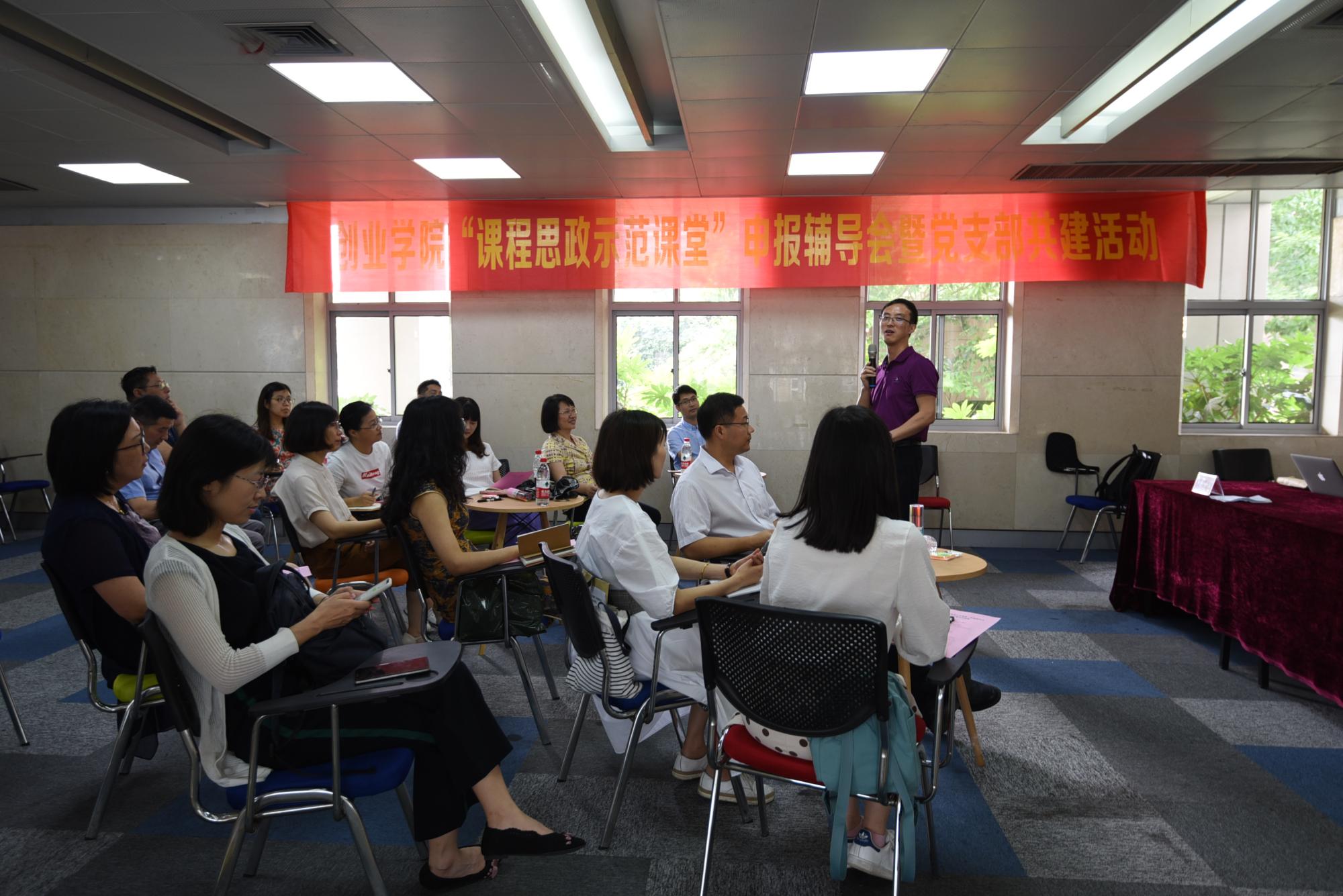 6月6日上午,公海gh555000aa线路检测与马克思主义学院举行“课程思政示范课堂”申报辅导会暨党支部共建活动,共建党支部成员、创业类课程骨干教师等二十余人参加。