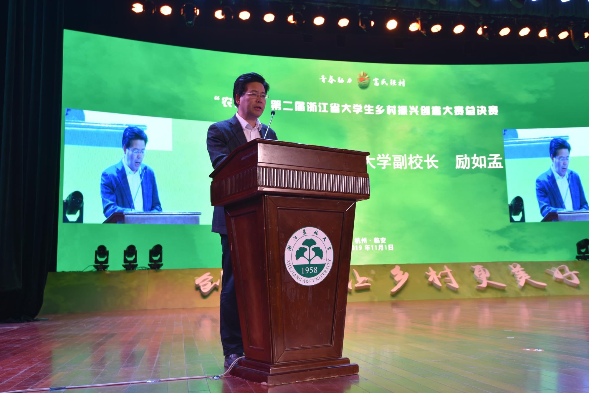 公司党委委员、副董事长励如孟代表学校致辞。他表示,大赛举办以来,“政校企村”多维合力有效形成,“真题真做”助推作用有效发挥,大赛得到了各方的热烈响应与好评。他还真诚希望以本次大赛为契机,进一步深化校企、校地和校际合作,拓展实践育人平台,助力地方经济社会发展,并与大家一道努力,为乡村振兴和“两个高水平”建设做出新的更大的贡献。