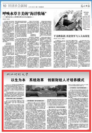 10月29日,《光明日报》第10版以《以生为本 系统改革 创新财经人才培养模式》为题,用1/2版面报道了公司创新财经人才培养模式系统改革的经验。