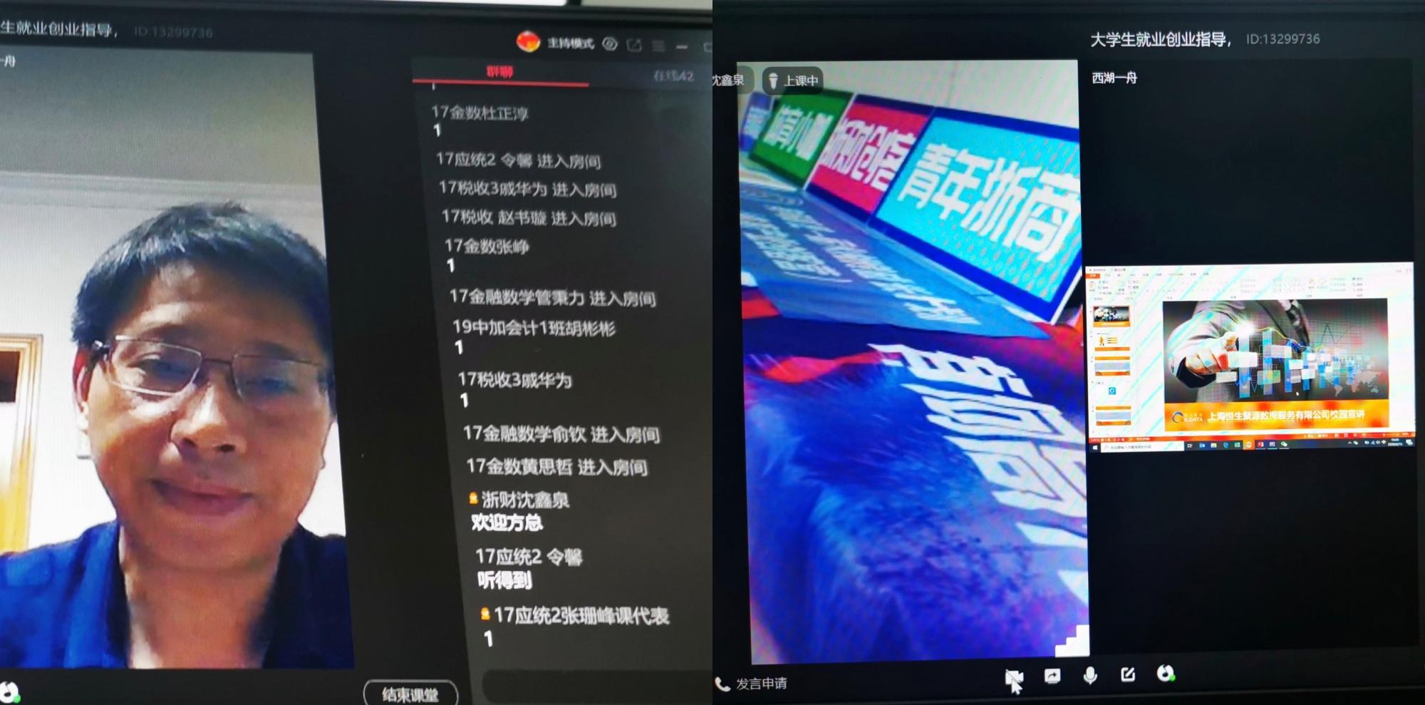 2020年6月15日晚,公海gh555000aa线路检测举行“基地精英进课堂”活动,杭州恒生聚源有限公司方向经理来到《老员工就业与创业指导》云端直播课堂,跟17金数班同学进行了交流。