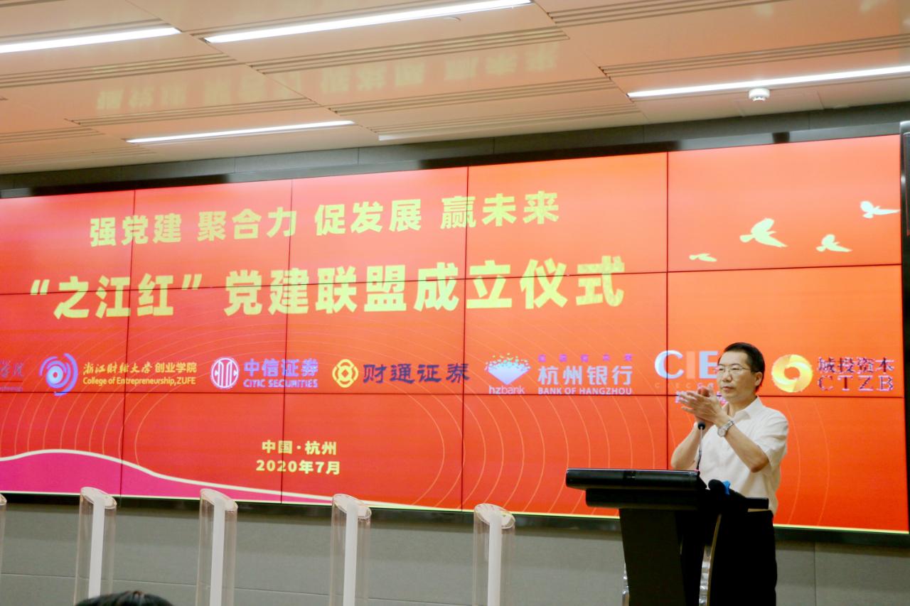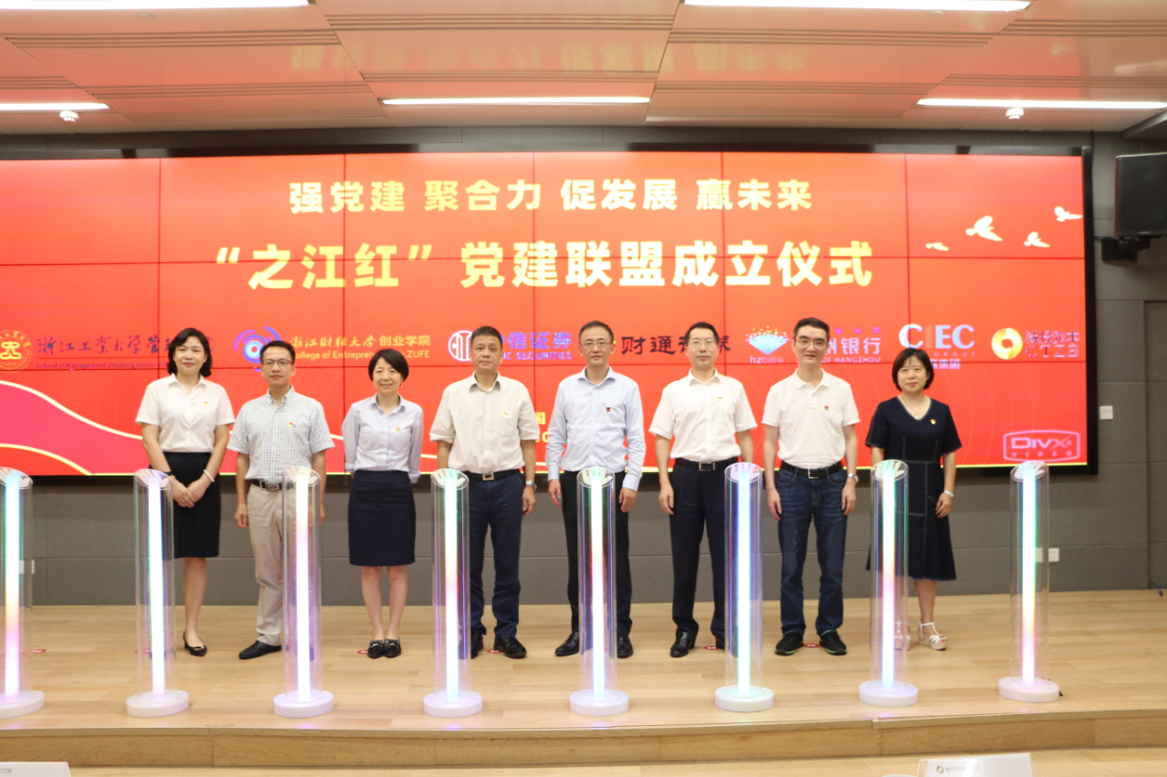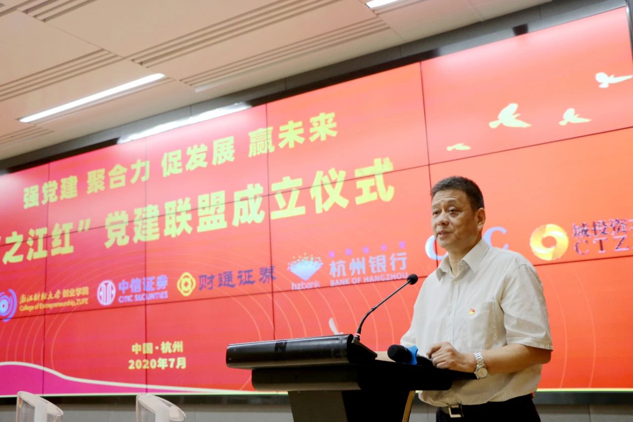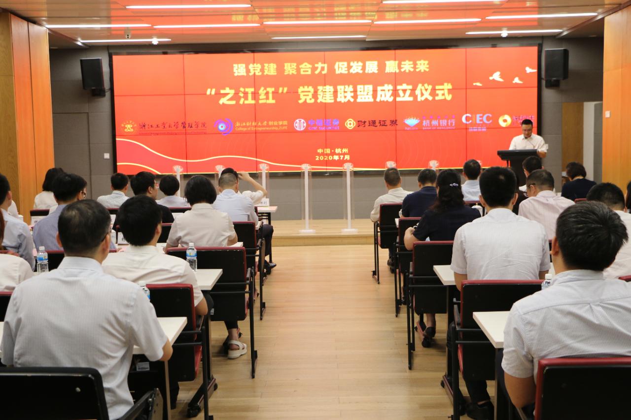 7月27日,“之江红”党建联盟成立仪式在杭州四季青街道党群服务中心举行。杭州城投集团党委副书记、副总经理范川,杭州市国资委党建工作处处长田佰辰,浙江工业大学管理公司党委书记李正卫,公海gh555000aa线路检测经理童夏雨,中信证券浙江分公司总经理陈钢,财通证券总部第五党总支副书记、投行综合管理部总经理吴佳伟,杭州银行党群工作部副主任陈小霞,杭州市实业投资集团党建工作部部长章卓佳,杭州热联集团纪委书记刘秀,杭州城投集团党群工作部组织员何颖,四季青街道办事处副主任王晓萍,杭州城投资产管理集团党委书记、董事长刘祥剑及联盟各单位党员代表共50余人参加。