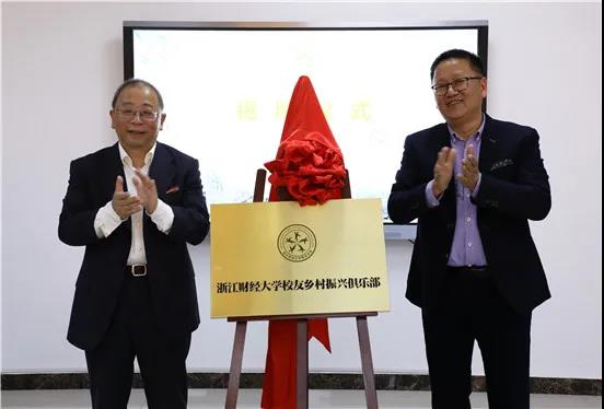 钟晓敏和楼胆群分别为员工乡村振兴俱乐部理事会成员颁发聘书并与俱乐部轮值主席蔡卫东共同揭牌。